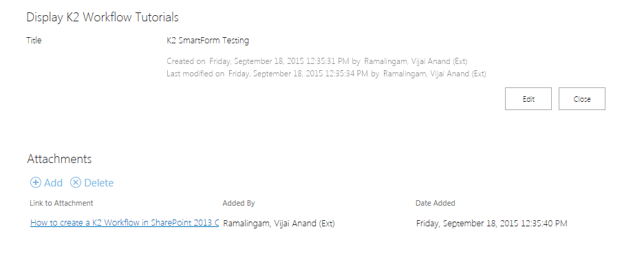 K2 SmartForms are customizable forms used in K2 applications to create New items, or Display and Edit existing items in the SharePoint List/Library. Default SharePoint list forms can be replaced with K2 SmartForms which can be easily customized to suit the requirements.