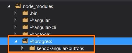 After installation is completed you will get the Kendo button package folder under node_modules->@progress in our project,