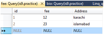 var query = dc.bios.Join(dc.fees, r => r.id, p => p.id, (r, p) => new { r.name, r.fname, p.Address });