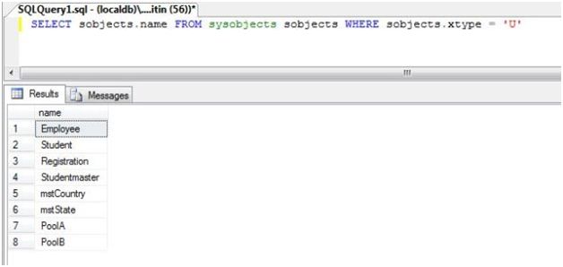 Wel, there is one more way by which we can list all the tables in a database. Write the following query in the query analyzer.