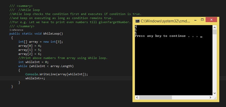 If we need to execute a line of code repeatedly until it reaches the defined condition, we make use of loops in C#. There are various loops in C# programming; i.e., While Loop, Do While loop, For loop, Foreach loop. Let's try to use each of them for a simple example.