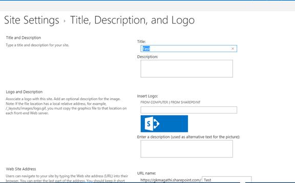 Associate a logo with this site. Add an optional description for the image. Note: If the file location has a local relative address, for example, /_layouts/images/logo.gif, you must copy the graphics file to that location on each front-end Web server.