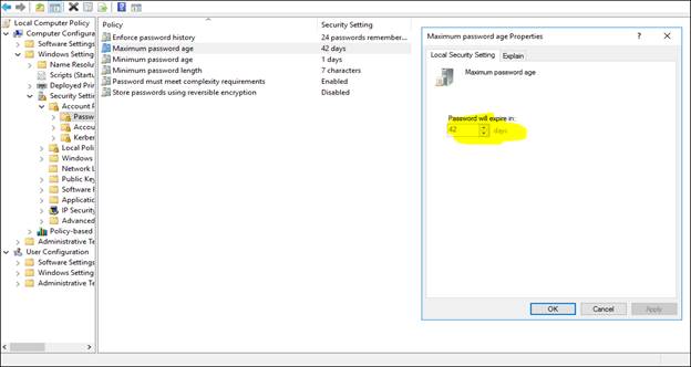 - Here we will select navigate to below option to modify for Maximum password Age.