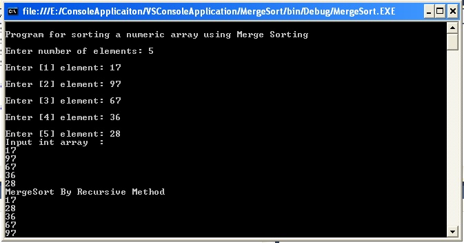 Console.WriteLine("MergeSort By Recursive Method");