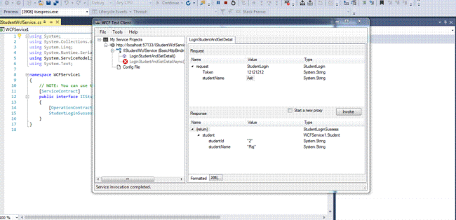 Now, I am creating a class StudentWcfService, which implements the IStudentWcfService interface and define all the methods, which are declared in an interface. In this class, I defined the method LoginStudentAndGetDetail , which is used for authenticating the student by checking the token, if the token is "12121212" (hard coded) and return the student detail, else it throws an exception.