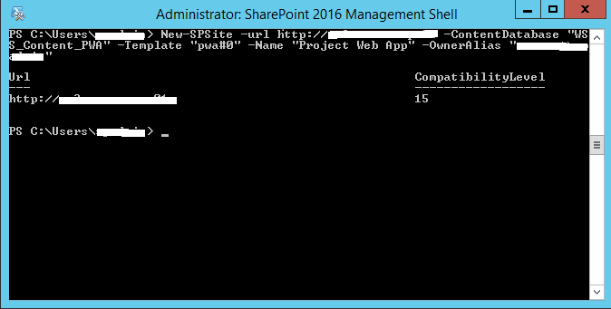- Type the below cmdlet to create a PWA instance in Project Server 2016: