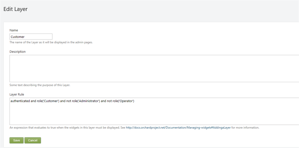 - Create New layer rule for "Customer" role.