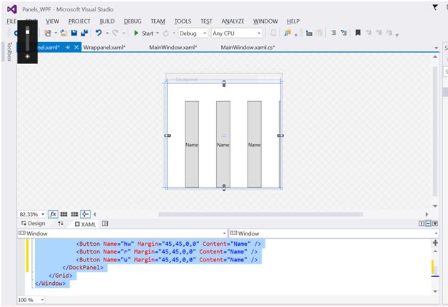 Step 5: Create a new window the same for Dockpanel and place the elements within the grid using. <Dockpanel></DockPanel>.