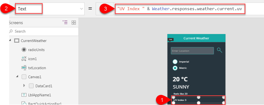 Set UV Index label text - "UV Index " & Weather.responses.weather.current.uv
