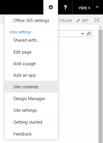 1) In the Setting Options, click on Site Contents.
