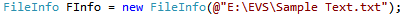 2. Make object of class "FileInfo" and in its constructor provide the address of a file. Place "@" sign before the string start.