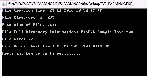3. Now with its object you can call all its method to display information about a file. This file could be your text file or image file and can be any file.