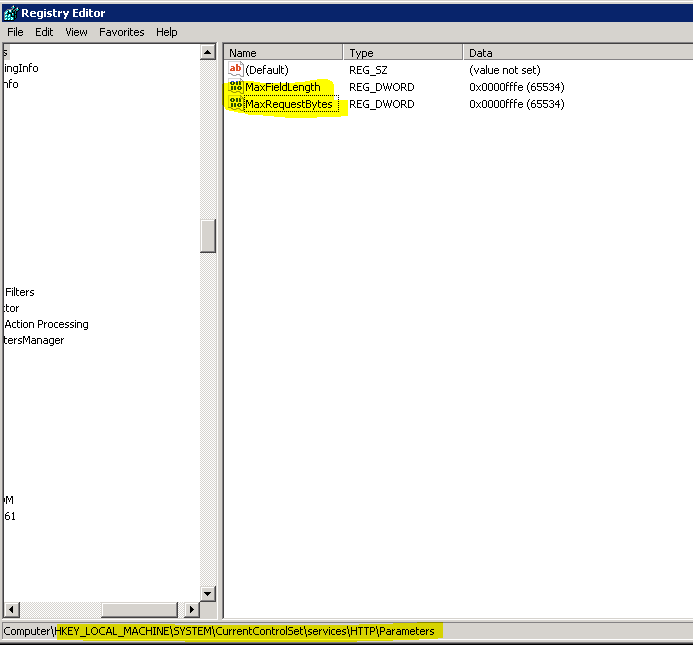 - You need to create registry entry "MaxRequestBytes" and "MaxFieldLength" under "HKEY_LOCAL_MACHINE\SYSTEM\CurrentControlSet\services\HTTP\Parameters" in the source machine/server where you are invoking/executing the command and set the decimal value to 65534.