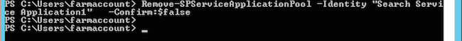 - Remove-SPServiceApplicationPool -Identity "Search Service Application1" -Confirm:$false