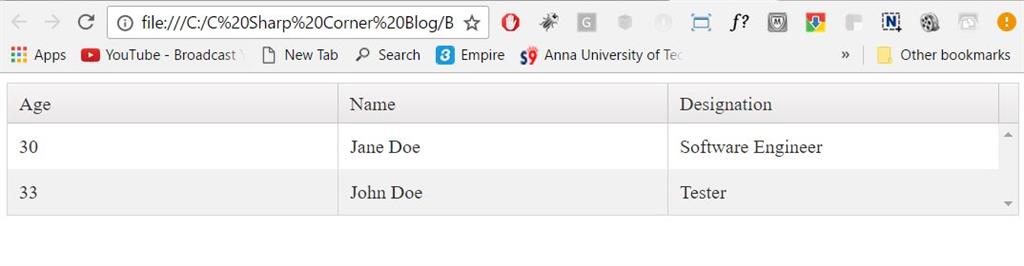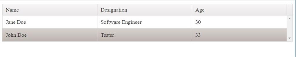 - { name: "Jane Doe", age: 30, Designation:"Software Engineer" },