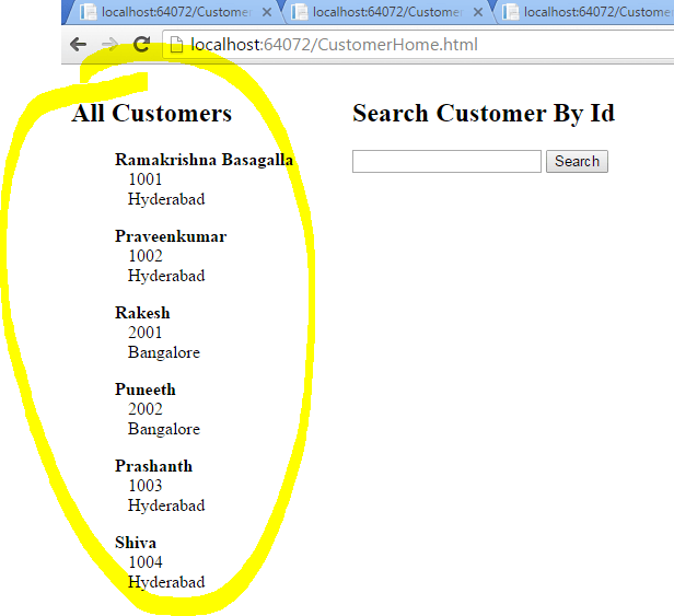 - <input type="button" id="btnSearch" value="Search" onclick="FindCustomer();" />