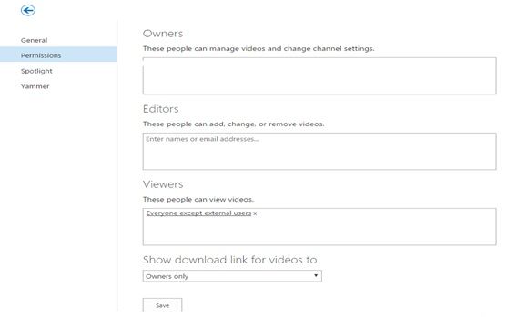 Here, you can set the owner of the channel, editor, viewer and who is able to download the video file.