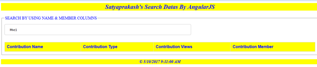 - <h2 style="background-color: Yellow;color: Blue; text-align: center; font-style: oblique">Satyaprakash's Search Datas By AngularJS</h2>