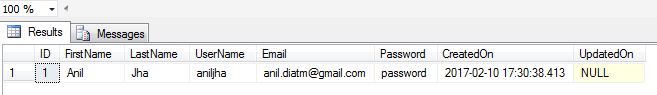 - [CreatedOn] [datetime] NULL DEFAULT (GETDATE()),