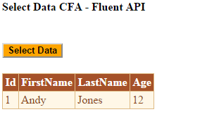 - <asp:Label ID="Label1" runat="server" Text="Select Data CFA - Fluent API" Font-Bold="true"></asp:Label>