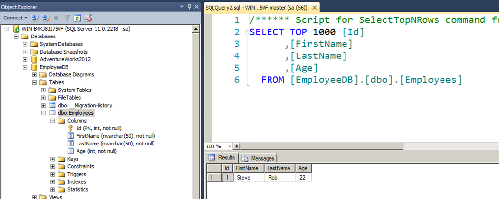 In this blog we will see how to access sql server database with entity framework code first approach and later we will also look at how to select data operation.