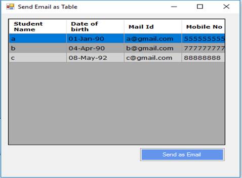 - Now, you can use these functions to send GridView data as a mail in button click, as shown below.