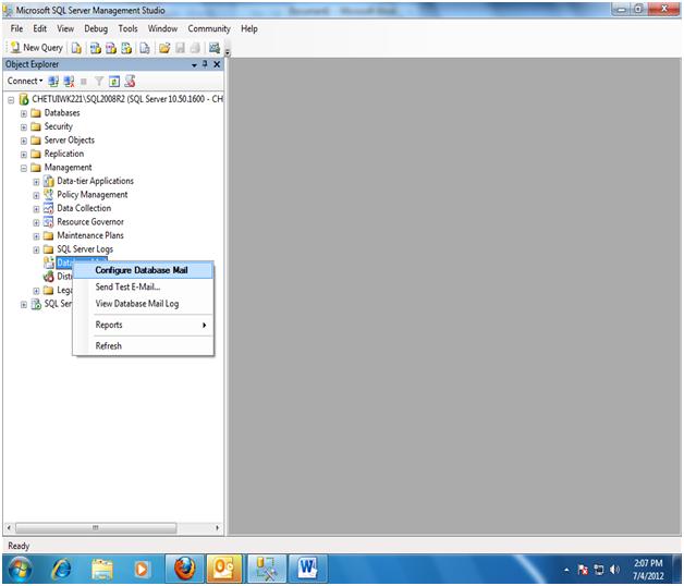 Database Mail and choose Configure Database Mail menu