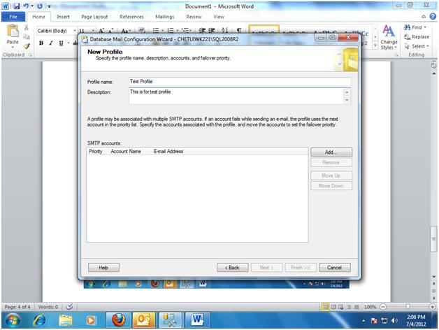 Step 13- Select Database Mail Profile and enter other detail