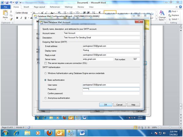 Step 7- New Database Mail Account dialog box will open enter