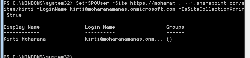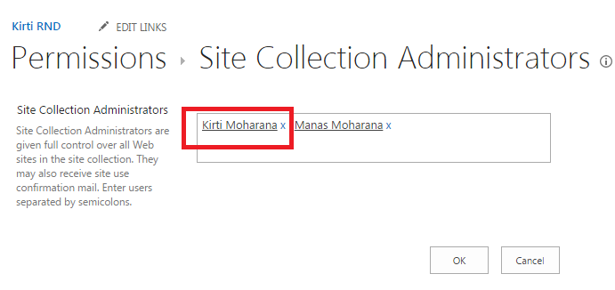 - Set “Kirti Moharana” as a site administrator of the provided site,
