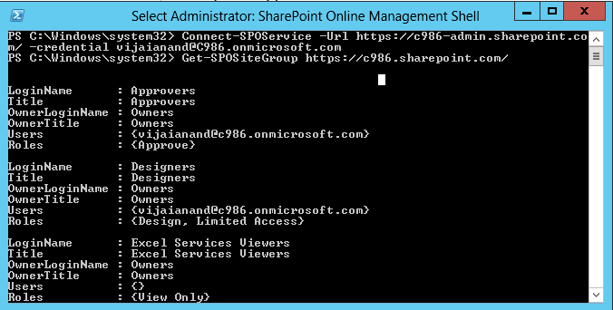 Get-SPOSiteGroup https://c986.sharepoint.com/