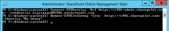 Remove-SPOSiteGroup -Site https://c986.sharepoint.com/ -Identity "My Group"