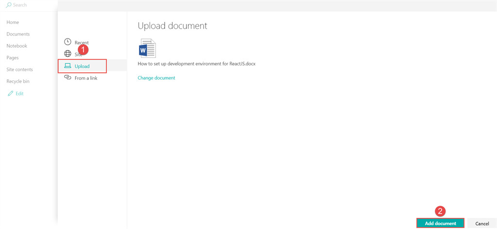 Click Upload document and then select the document from your desktop. Click Add document.