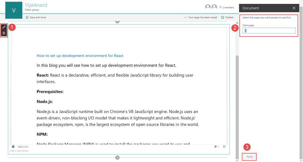 Document Webpart is added to the page and published, as shown below.