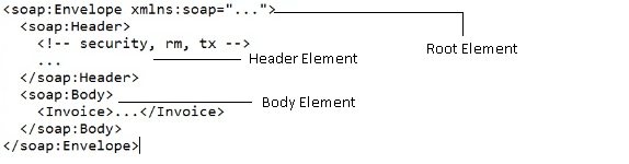 - In header, you can add additional XML based headers like transaction, reliable messaging and security etc.