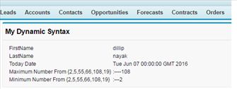I have just written the syntax for displaying (My Name,Today Date,Max Number,Min Number). Please find the below code and paste same over your visualforce page. Then just click the preview button and it will redirect you to newly created Visualforce.