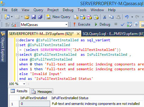 - set @IsFullTextInstalled = (select SERVERPROPERTY('IsFullTextInstalled'))