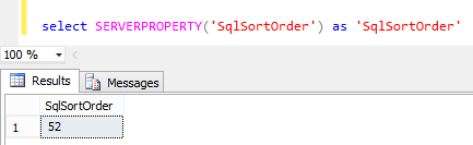 - select SERVERPROPERTY('SqlSortOrder') as 'SqlSortOrder'.