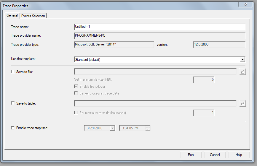 Besides tick button for save to file ,save to table and enable trace stop time for trace particular time then click run button.