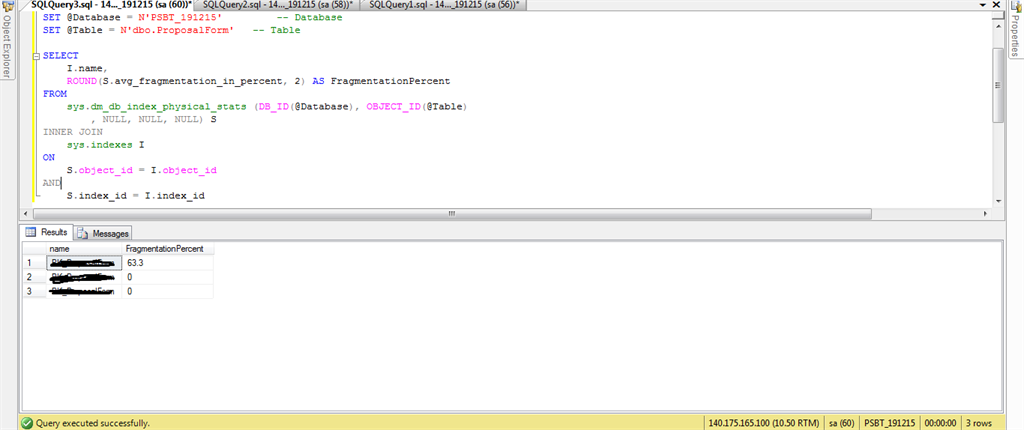 9.     ROUND(S.avg_fragmentation_in_percent, 2) AS FragmentationPercent