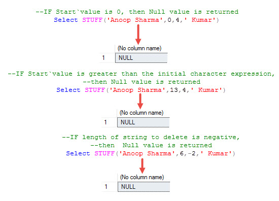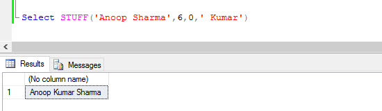 STUFF function is used to insert a string into another string. Basically, it deletes the characters from a source string and inserts another string at the specified position.