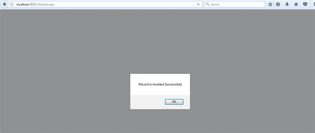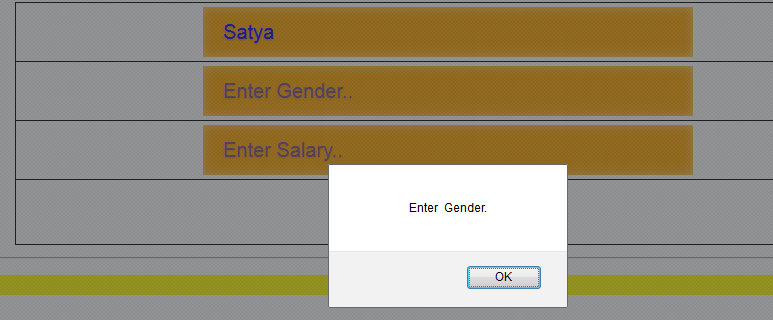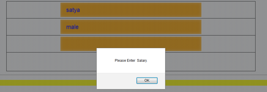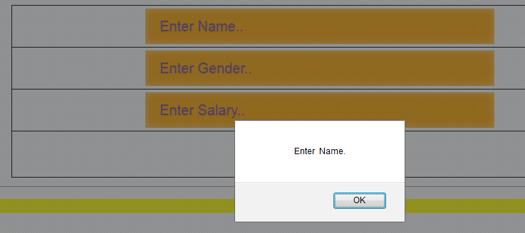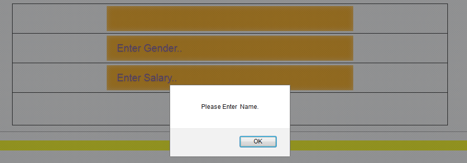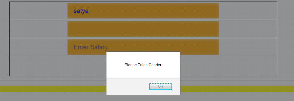 Here, I validate the three textboxes. If the textbox is empty and button is clicked, it will present a screen, as shown below.