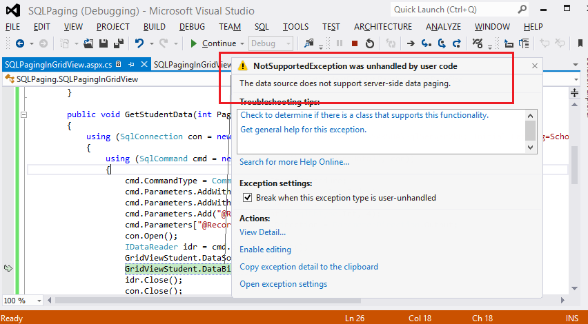 To Avoid this Make sure you are not using any Built in Paging property in your Grid  View ie: AllowPaging or any Paging Event... :)