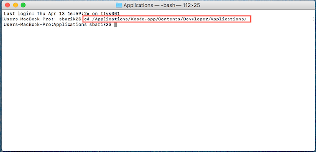 Change Directory in the terminal to /Applications/Xcode.app/Contents/Developer/Applications/