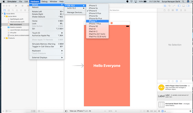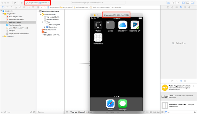 [ In this demo, I will create a hello world app and will open the same app in iPhone 7 and iPhone 6 simulator simultaneously].