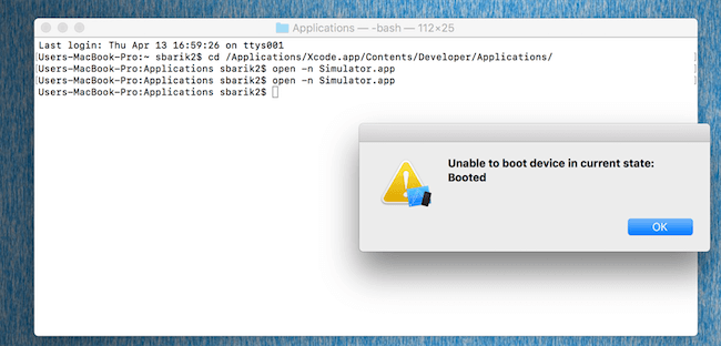 To open the anothor Simulator (iPhone 7 in my case) repeat step 4. This time; we will get a warning of exactly " Unable to boot device in the current state: Booted ".