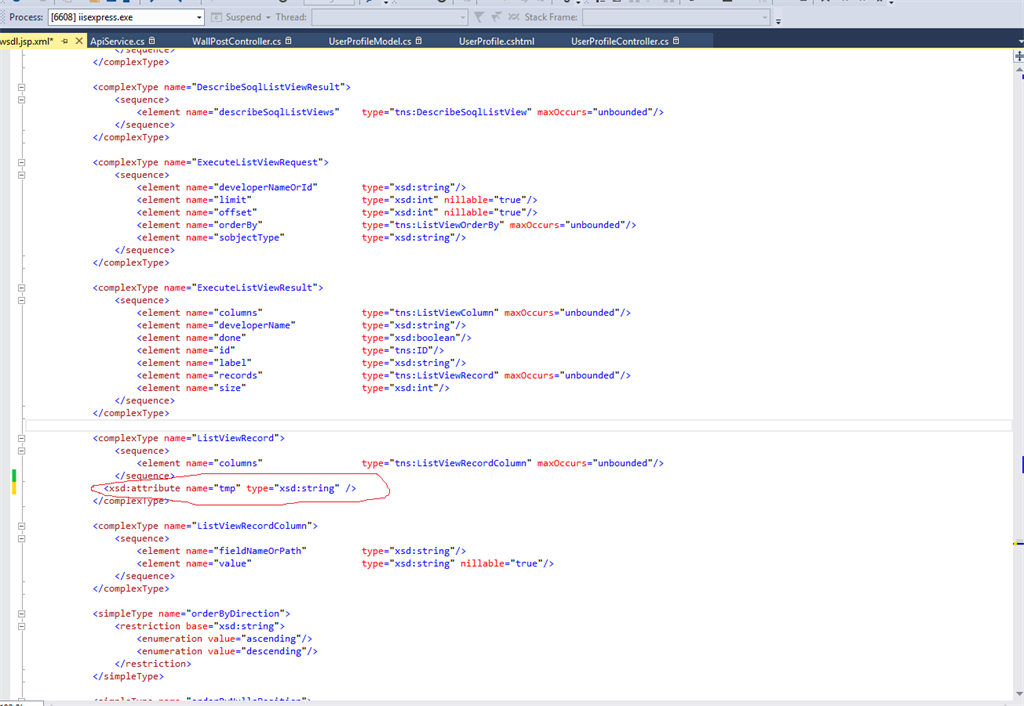 Step 3: Add "<xsd:attribute name="tmp" type="xsd:string" />".