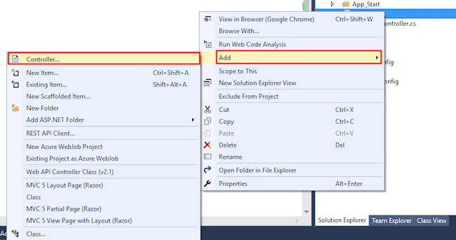 1. Right Click on the controller folder