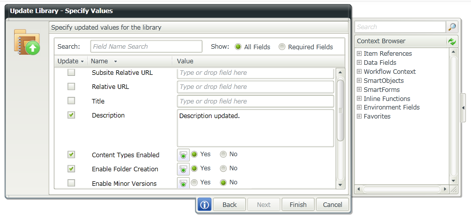 Specify updated values for the library and then click on Finish button.