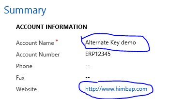 - accountUpd[“name”] = “Alternate Key Demo”;